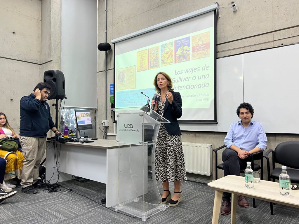 La primera en exponer fue la historiadora e investigadora de Faro UDD, Jacqueline Dussaillant, quien sostuvo que «los cuentos que conocemos como la Caperucita Roja o la Bella Durmiente, vienen de la tradición oral, por lo que, la Caperucita que hoy conocemos es muy distinta a la de años atrás». Dussaillant, analizó en detalle «Los viajes de Gulliver» y señaló que éste no era un cuento de niños. «Gran parte de los ‘Viajes de Gulliver’ son mensajes venenosos contra los ingleses y los whigs (liberales)».