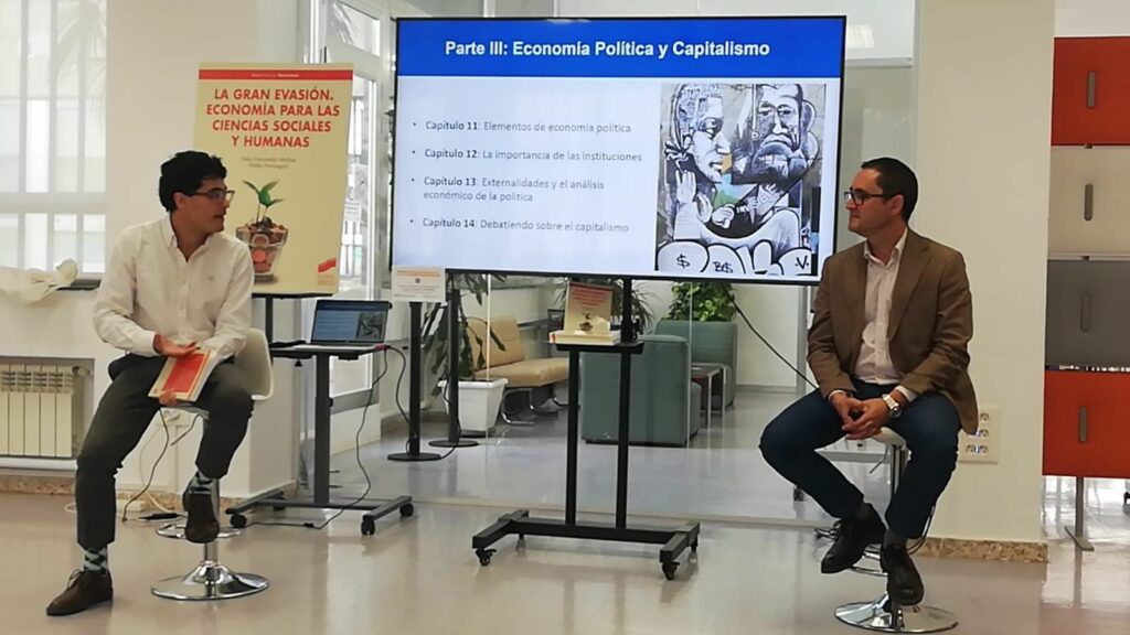 Con una extensa agenda en Madrid, el director del Magíster en Filosofía, Políticia y Economía, Pablo Paniagua, junto a Felix Fernando Muñoz, presentaron su nuevo libro llamado «La Gran Evasión. Economía para las ciencias sociales y humanas».