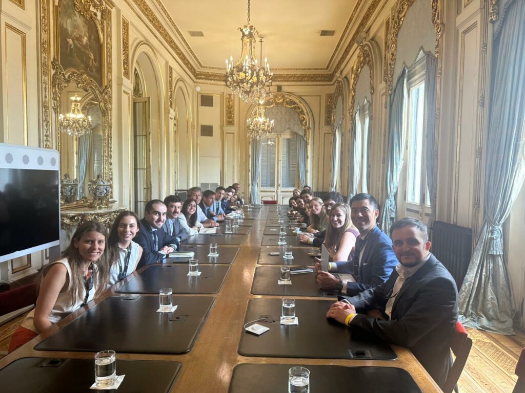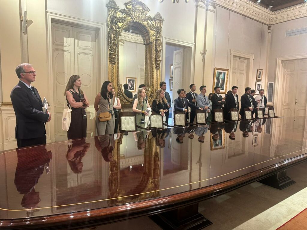 El grupo también tuvo la oportunidad de ingresar a la Casa Rosada y mantener una reunión privada con Javier Lanari, vocero del gobierno de Milei, quien describió el liderazgo del Presidente y la manera en que este ha conectado con los argentinos.