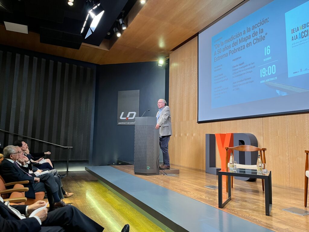 El martes 16 de diciembre, el profesor investigador de Faro UDD, Claudio Sapelli, participó como comentarista en el lanzamiento del libro “De la medición a la acción: a 50 años del Mapa de la Extrema Pobreza en Chile”, actividad organizada por Libertad y Desarrollo y la Fundación Miguel Kast, en el marco de los 50 años desde que Chile comenzó a medir la pobreza mediante instrumentos y metodologías objetivas.