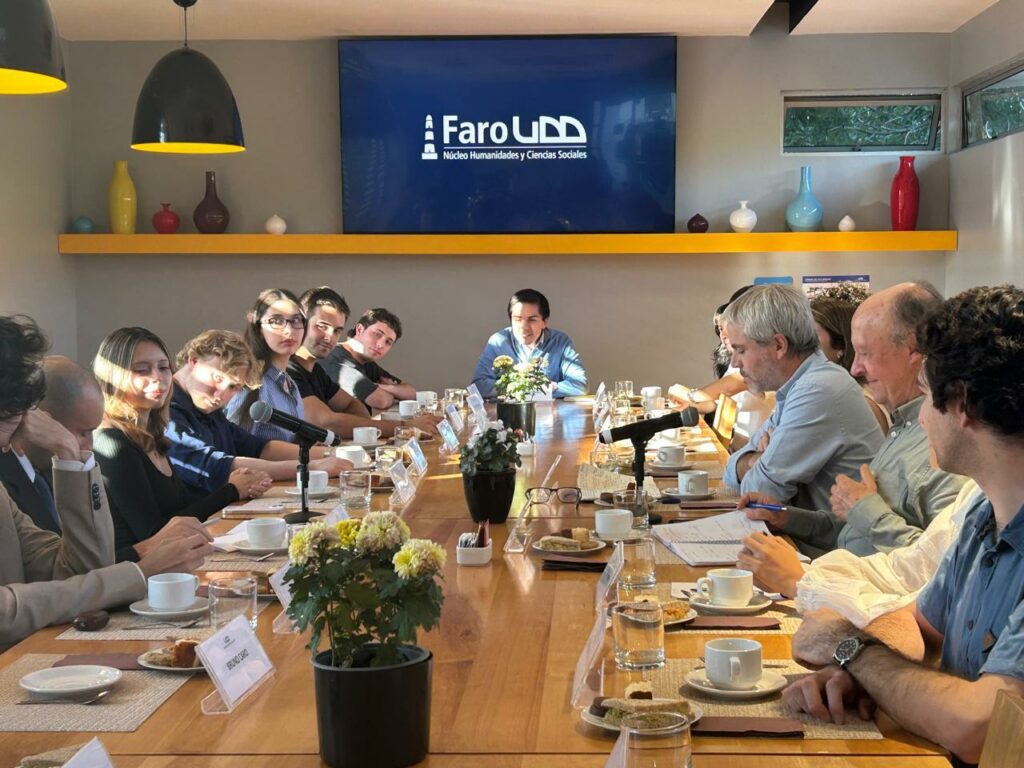 La instancia reunió a 22 alumnos – seleccionados por recomendación de profesores de Faro UDD y por su participación en el programa Estudiantes Destacados UDD – y contó con la participación de los exministros Cristián Larroulet y Gonzalo Blumel. La conversación fue moderada por Jorge Cordero, director de la Licenciatura en Filosofía, Política y Economía, y se abrió con una pregunta directa: en una crisis, ¿cuál es el mayor enemigo del buen gobierno?