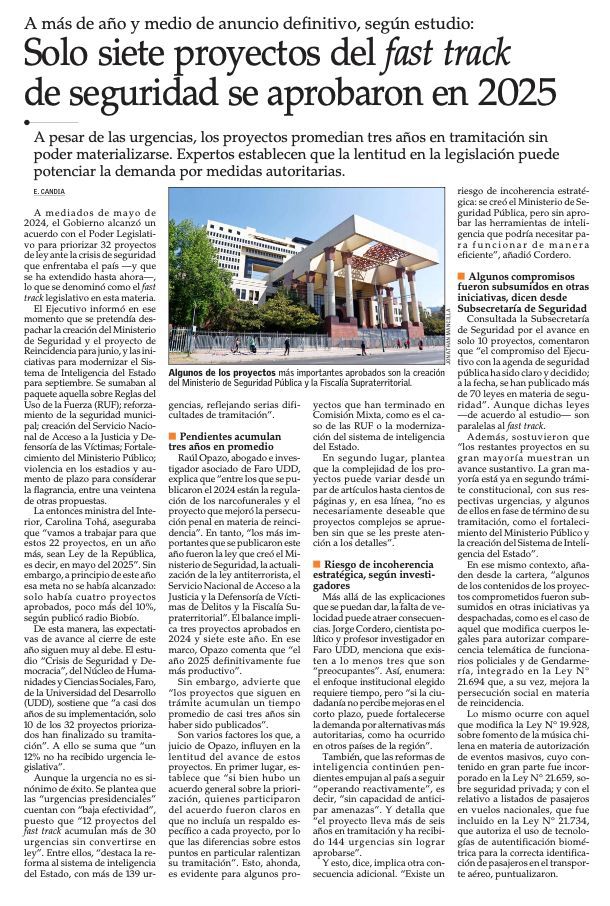 29.12.2025 Estudio Faro UDD: Crisis de seguridad y análisis de la respuesta legislativa en El Mercurio