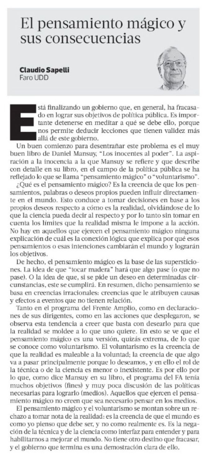 Claudio Sapelli: El pensamiento mágico y sus consecuencias